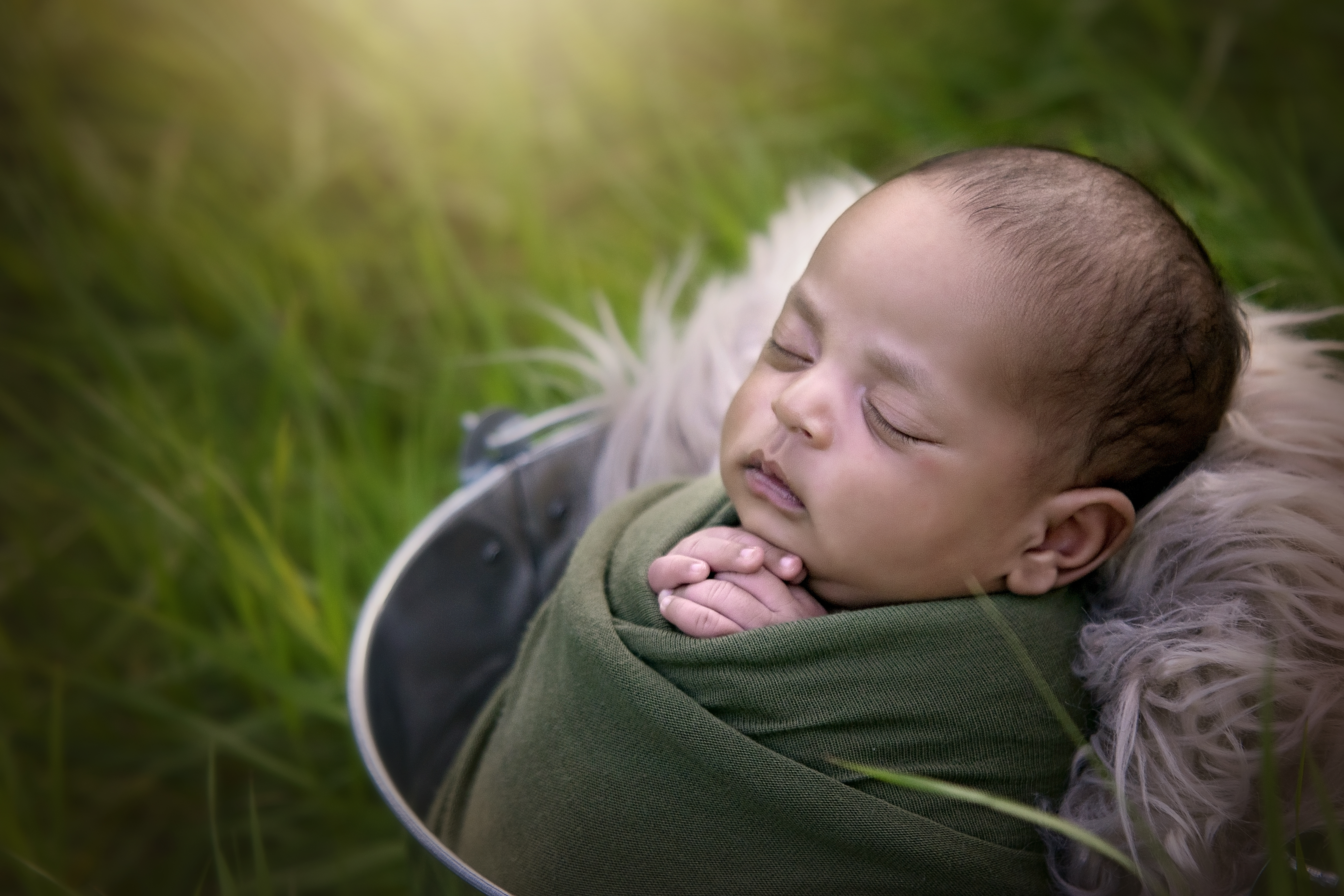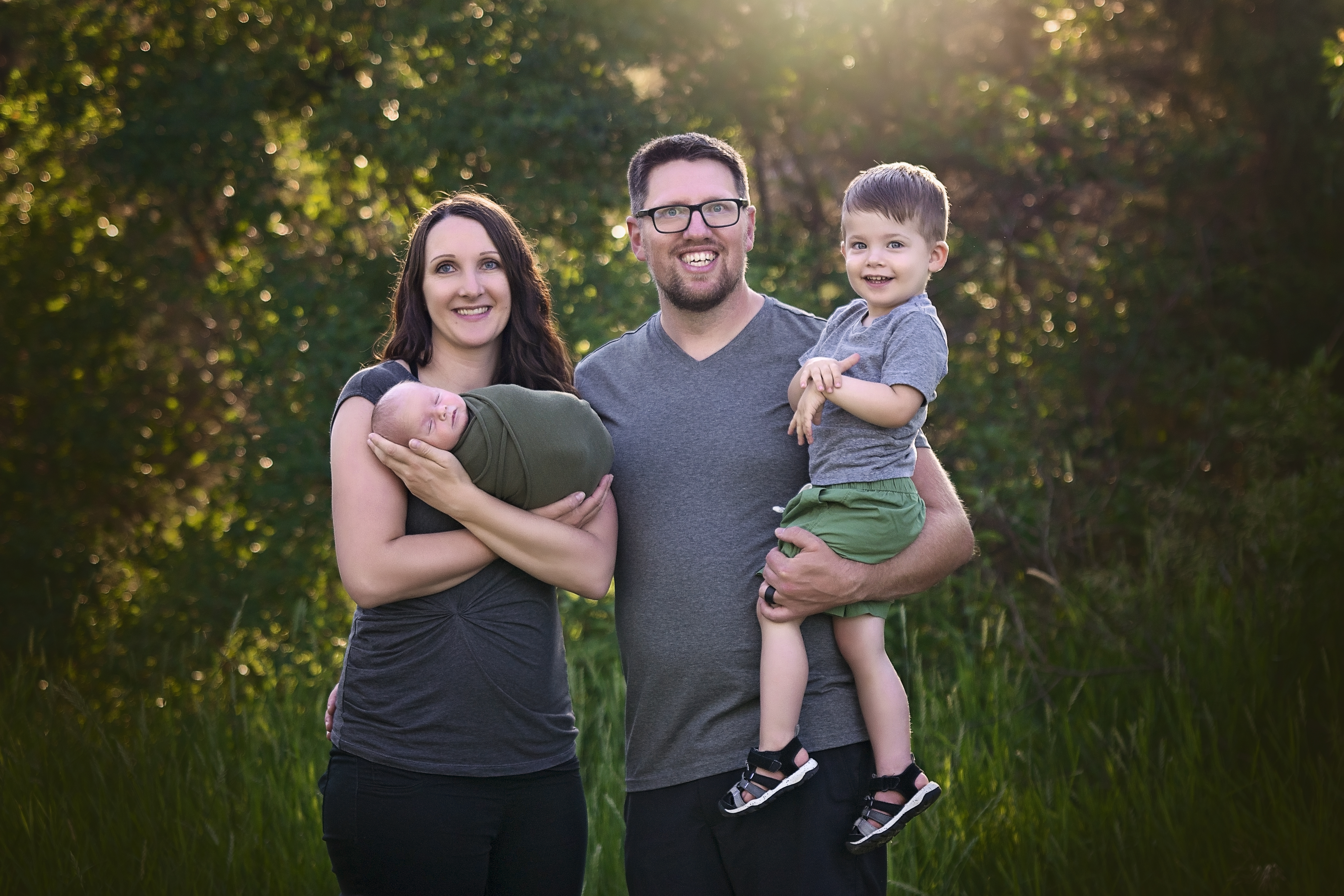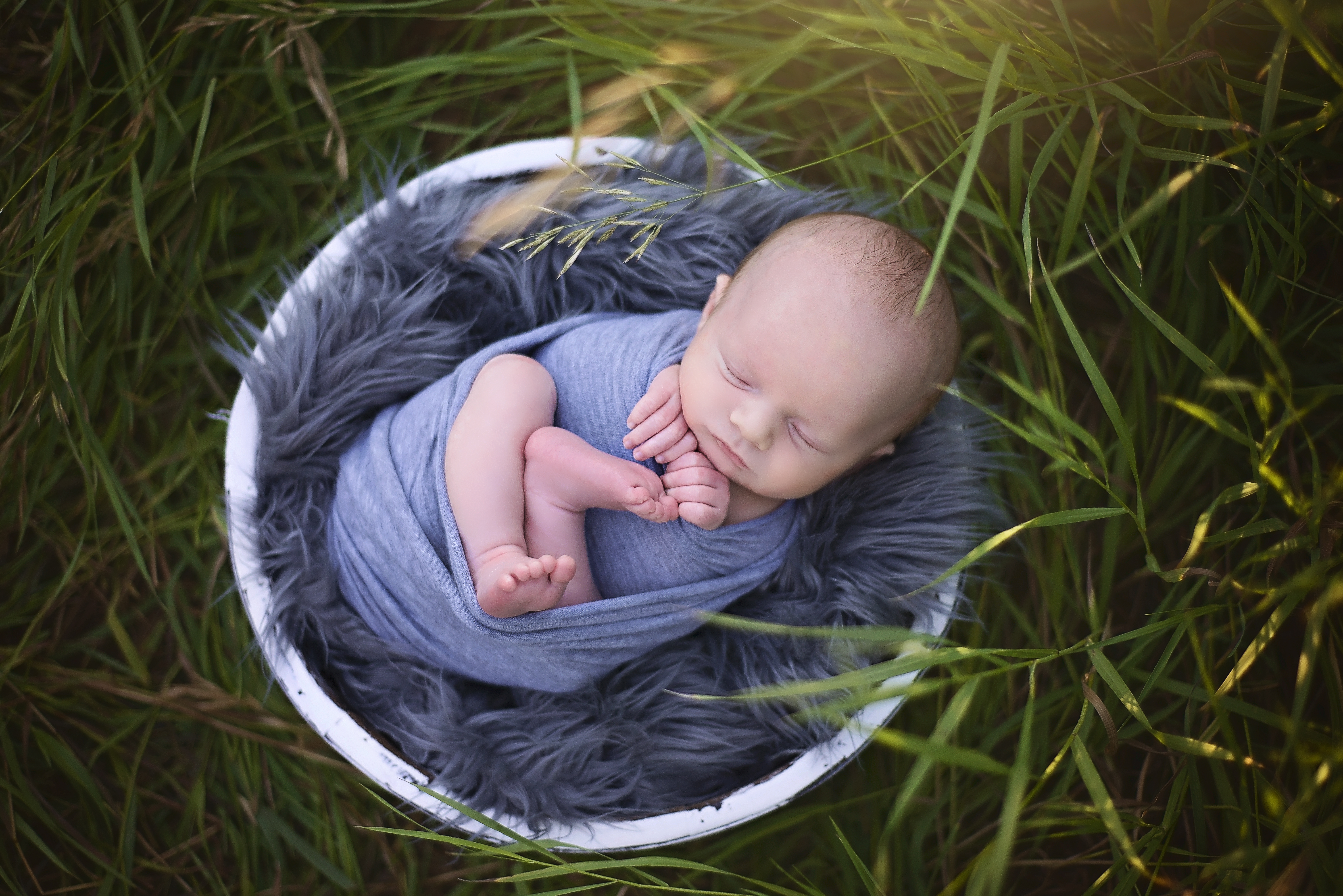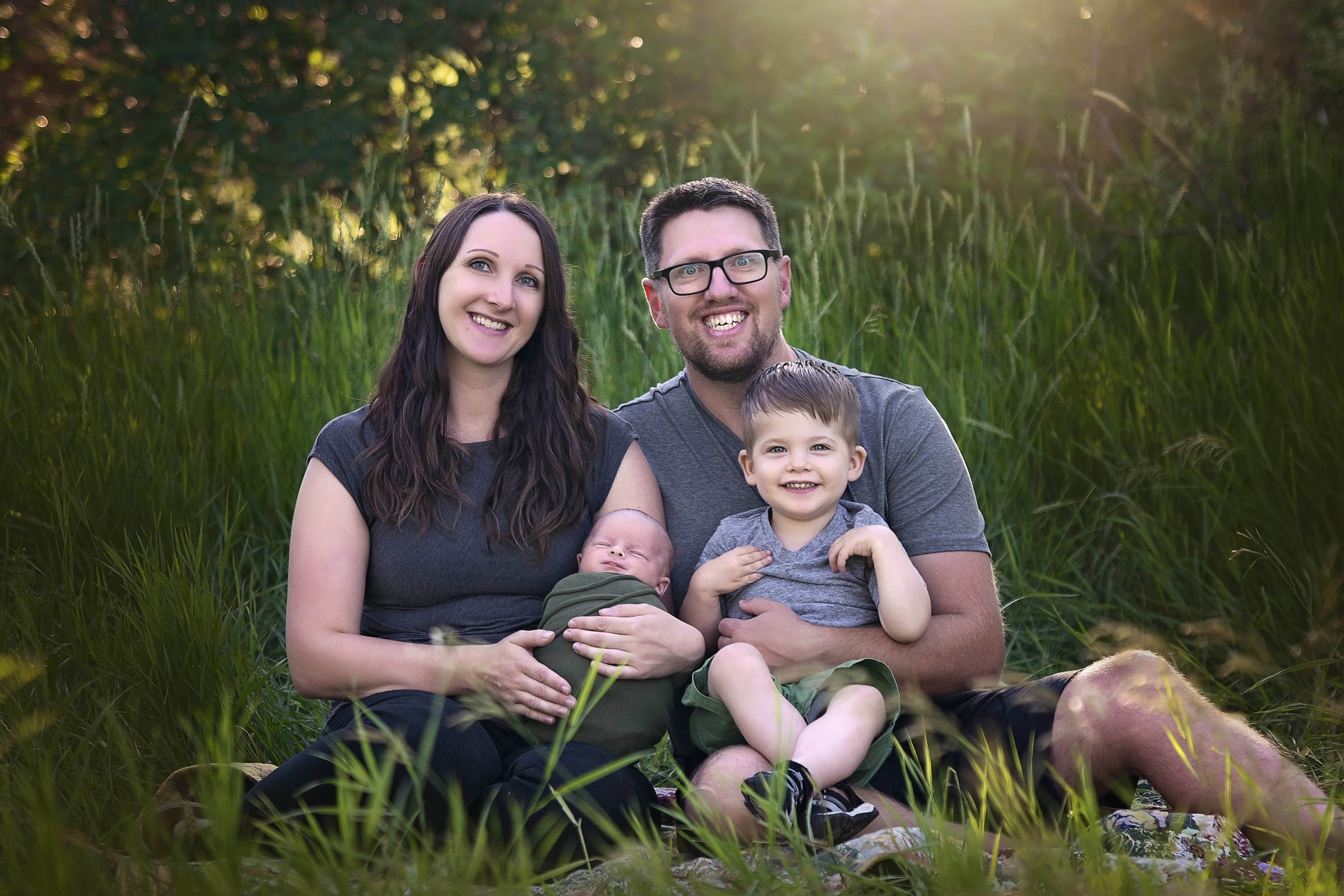 Outdoor sessions are held in a beautiful outdoor area within Regina. These are typically done in the warmer months and held 1-2 hours prior to sunset. During the outdoor session, baby will be wrapped for most of the poses. The outdoor sessions focus a lot more on family photos with the new baby and then wrapped prop shots of baby alone. All sessions will be done when the baby is between the ages of 7 – 30 days of age. Each session typically lasts between 1-2 hours. Props and outfits for baby will be provided by me, with your colour preference.