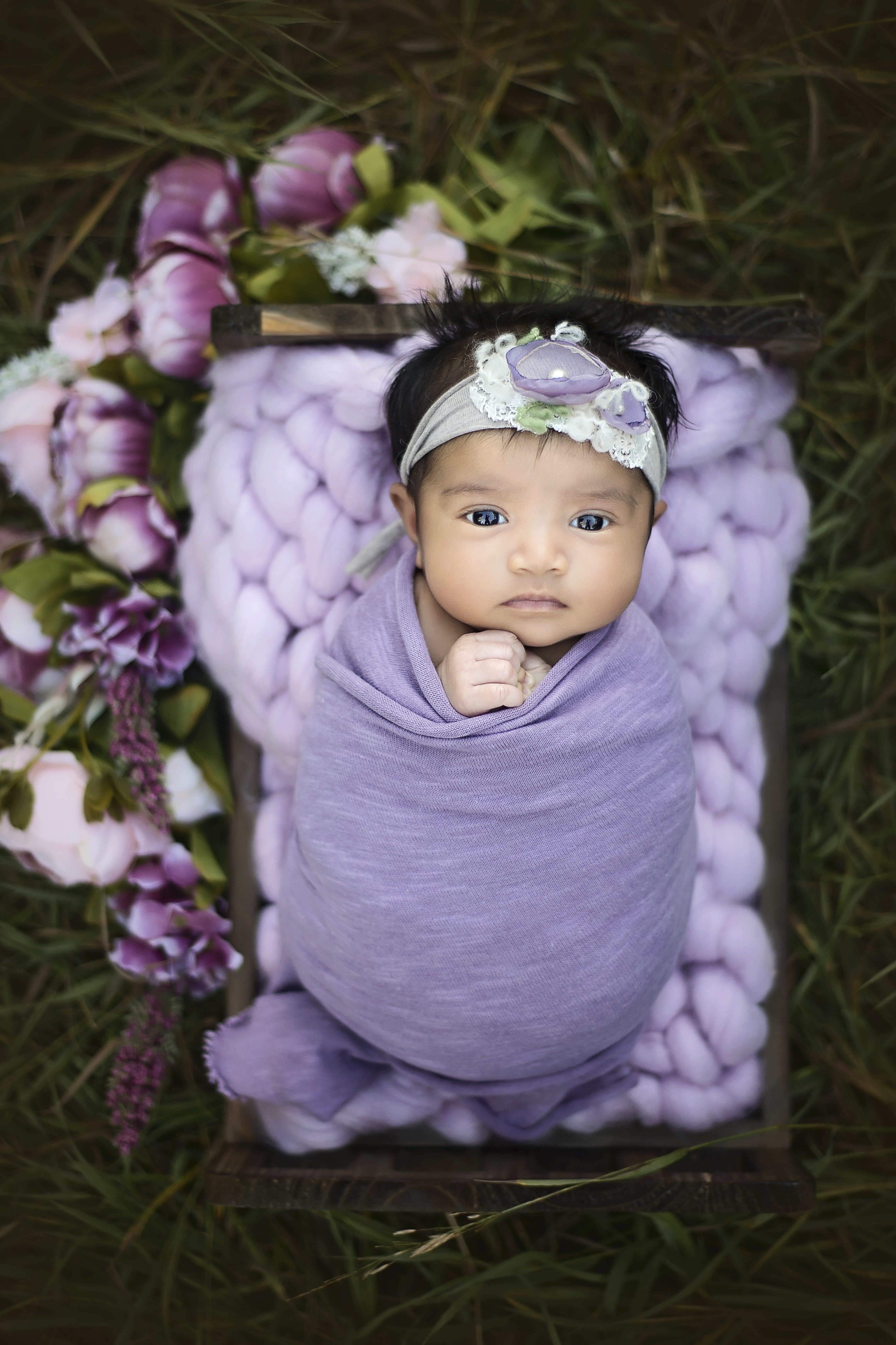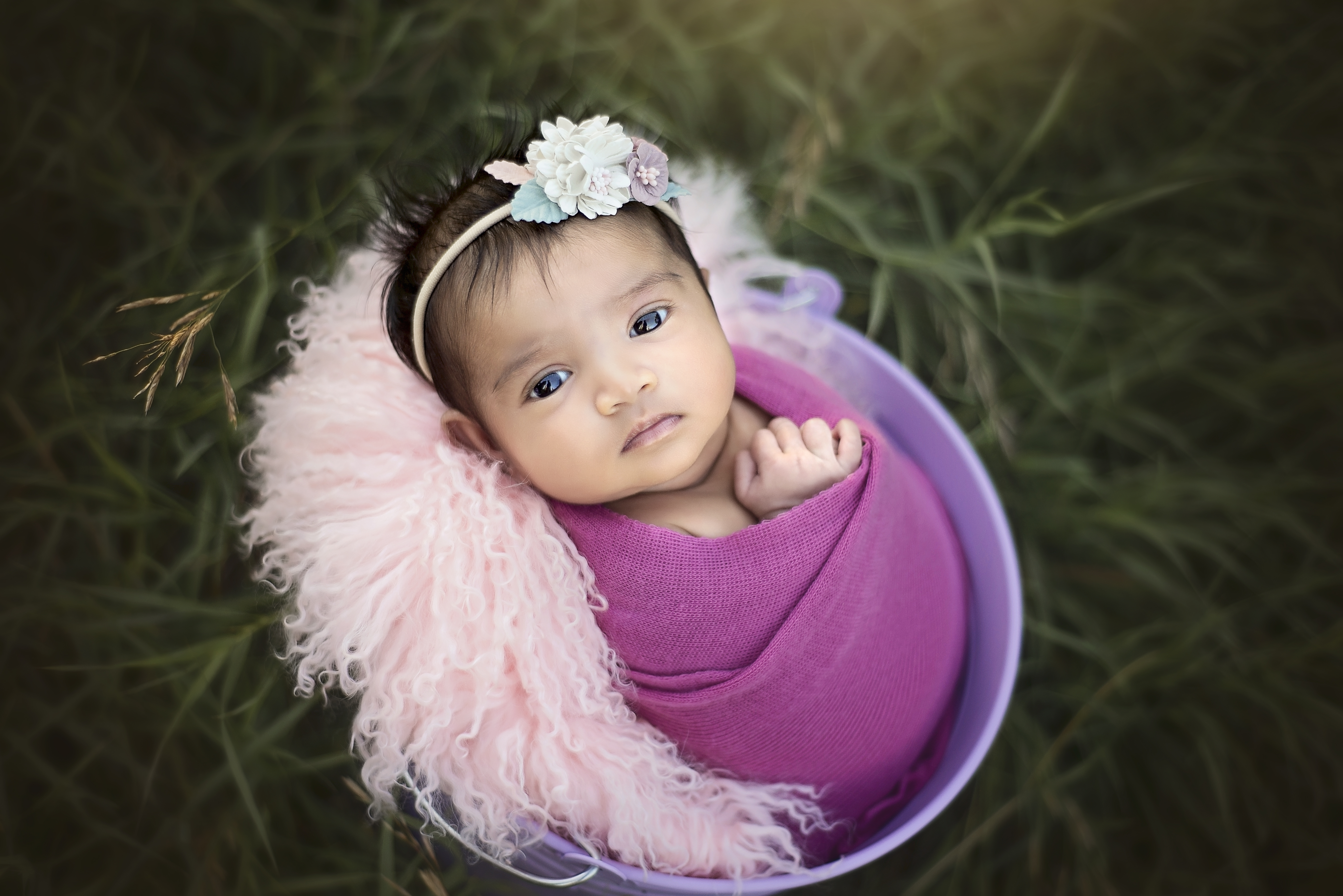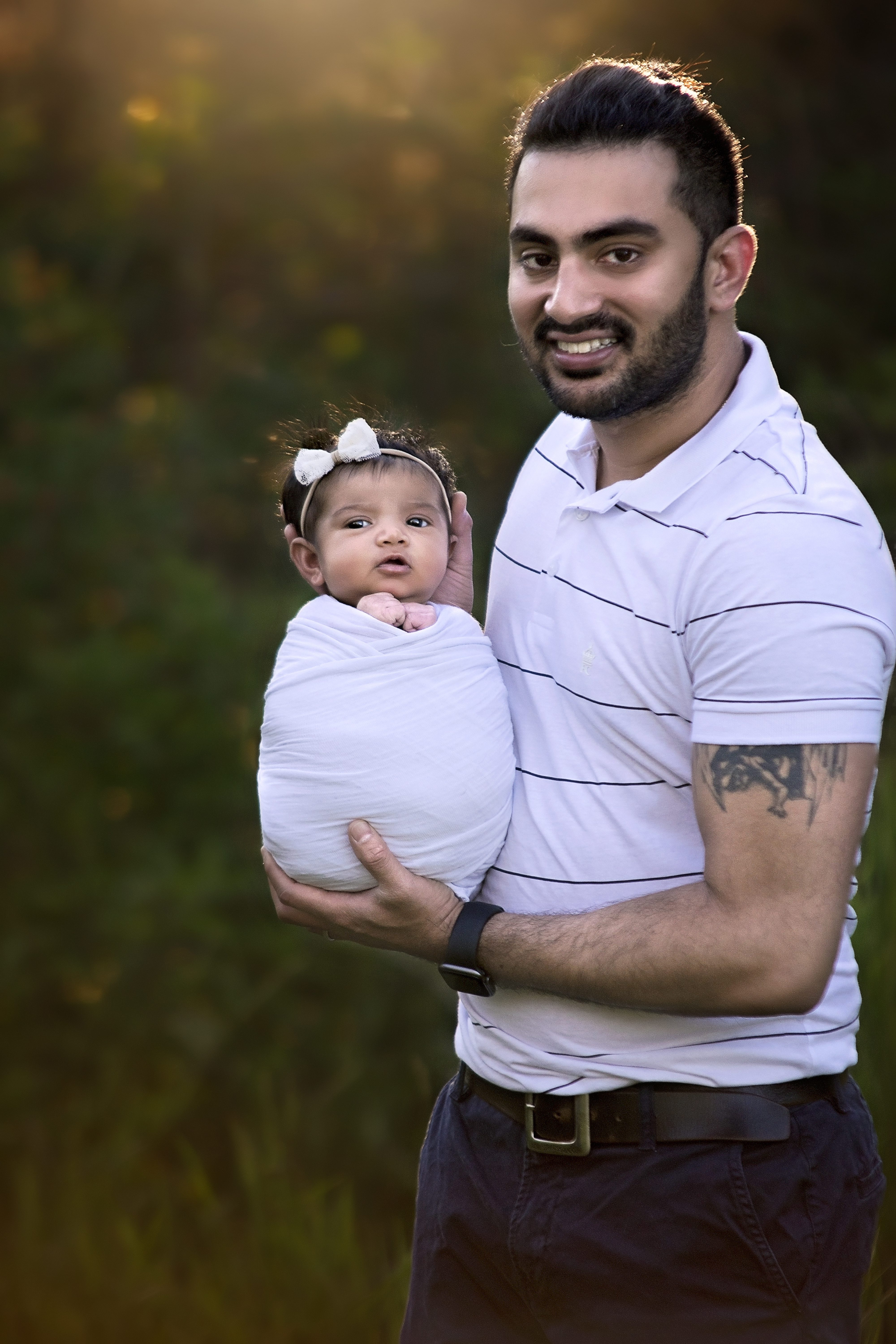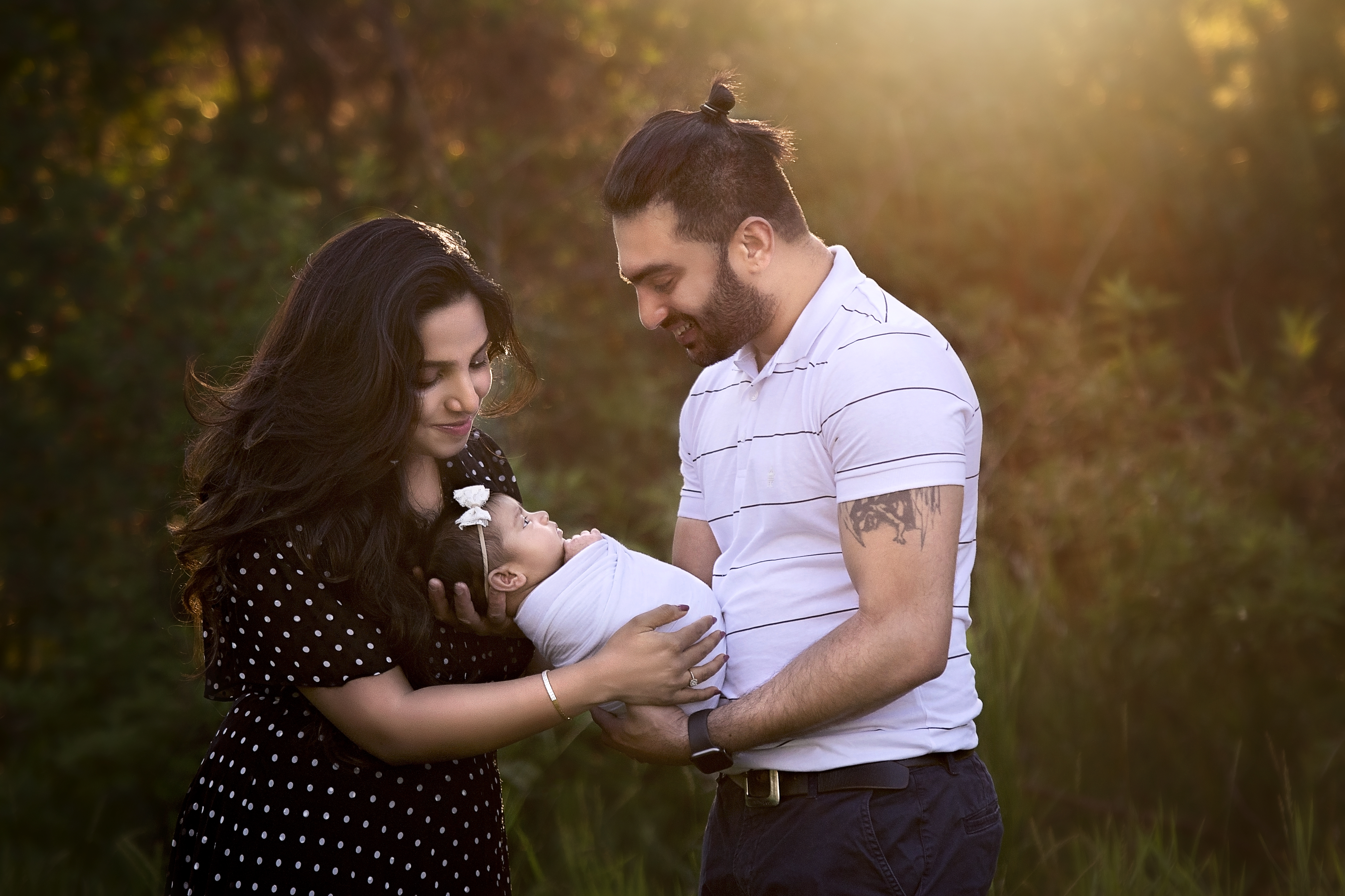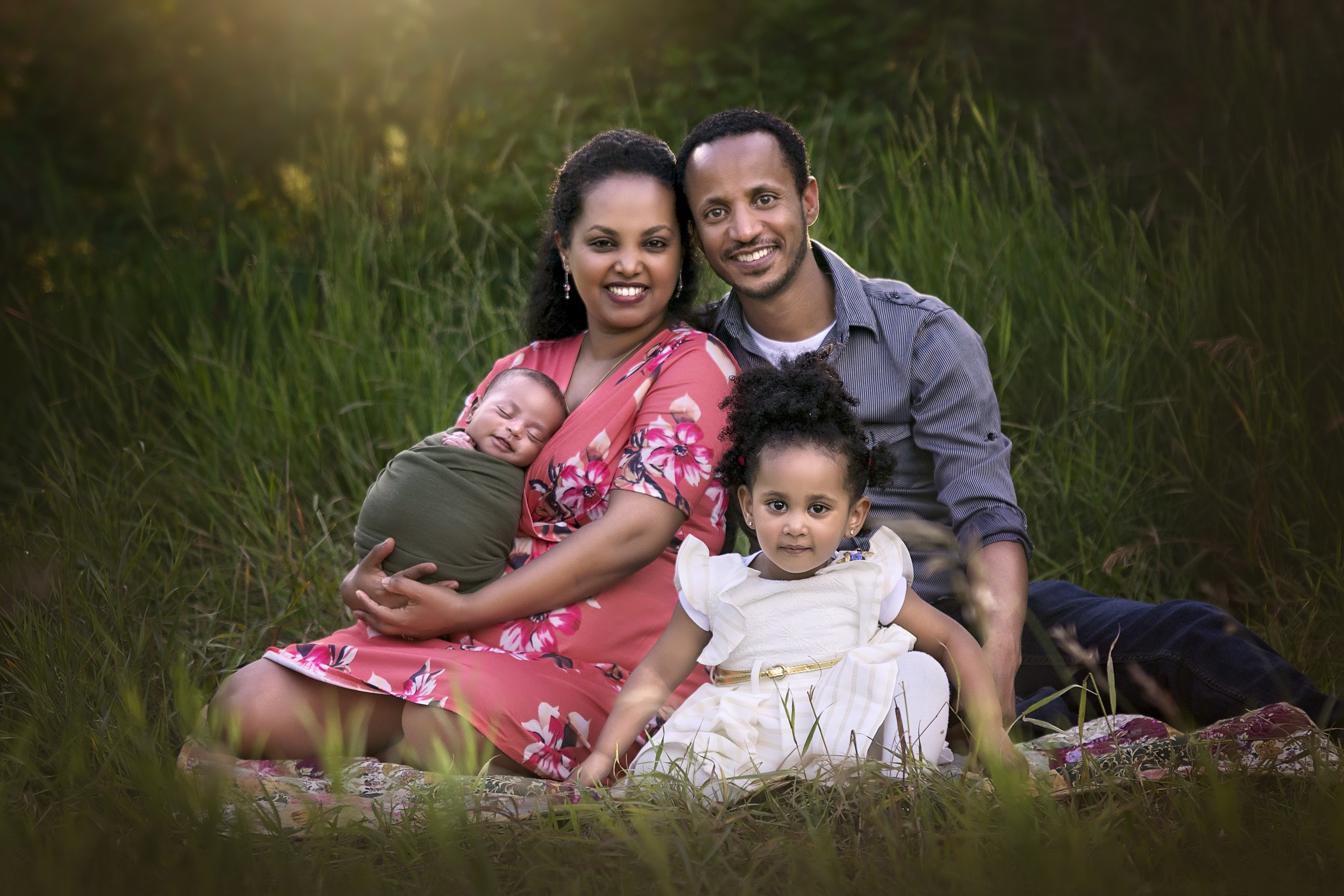 Outdoor sessions are held in a beautiful outdoor area within Regina. These are typically done in the warmer months and held 1-2 hours prior to sunset. During the outdoor session, baby will be wrapped for most of the poses. The outdoor sessions focus a lot more on family photos with the new baby and then wrapped prop shots of baby alone. All sessions will be done when the baby is between the ages of 7 – 30 days of age. Each session typically lasts between 1-2 hours. Props and outfits for baby will be provided by me, with your colour preference.