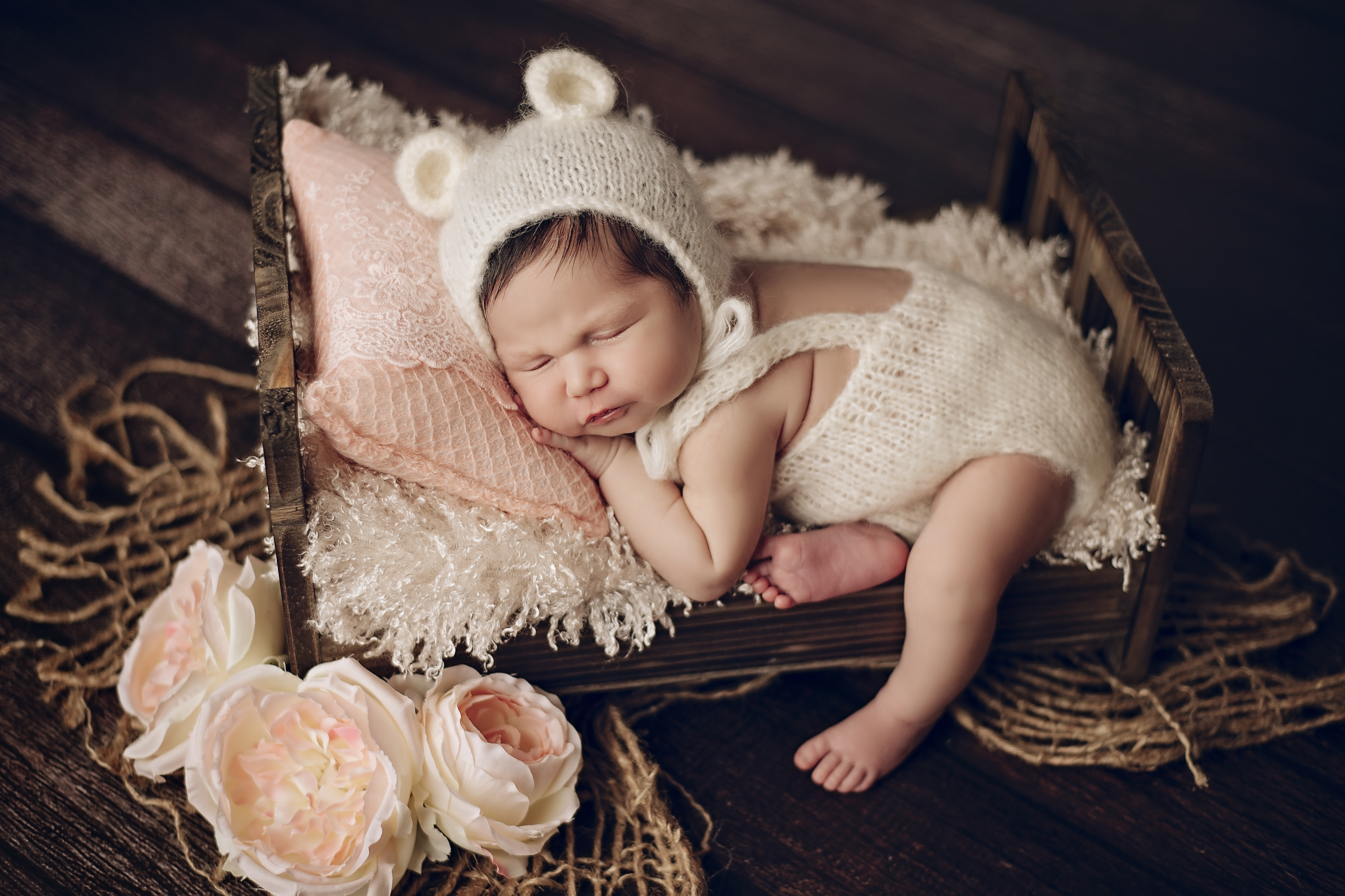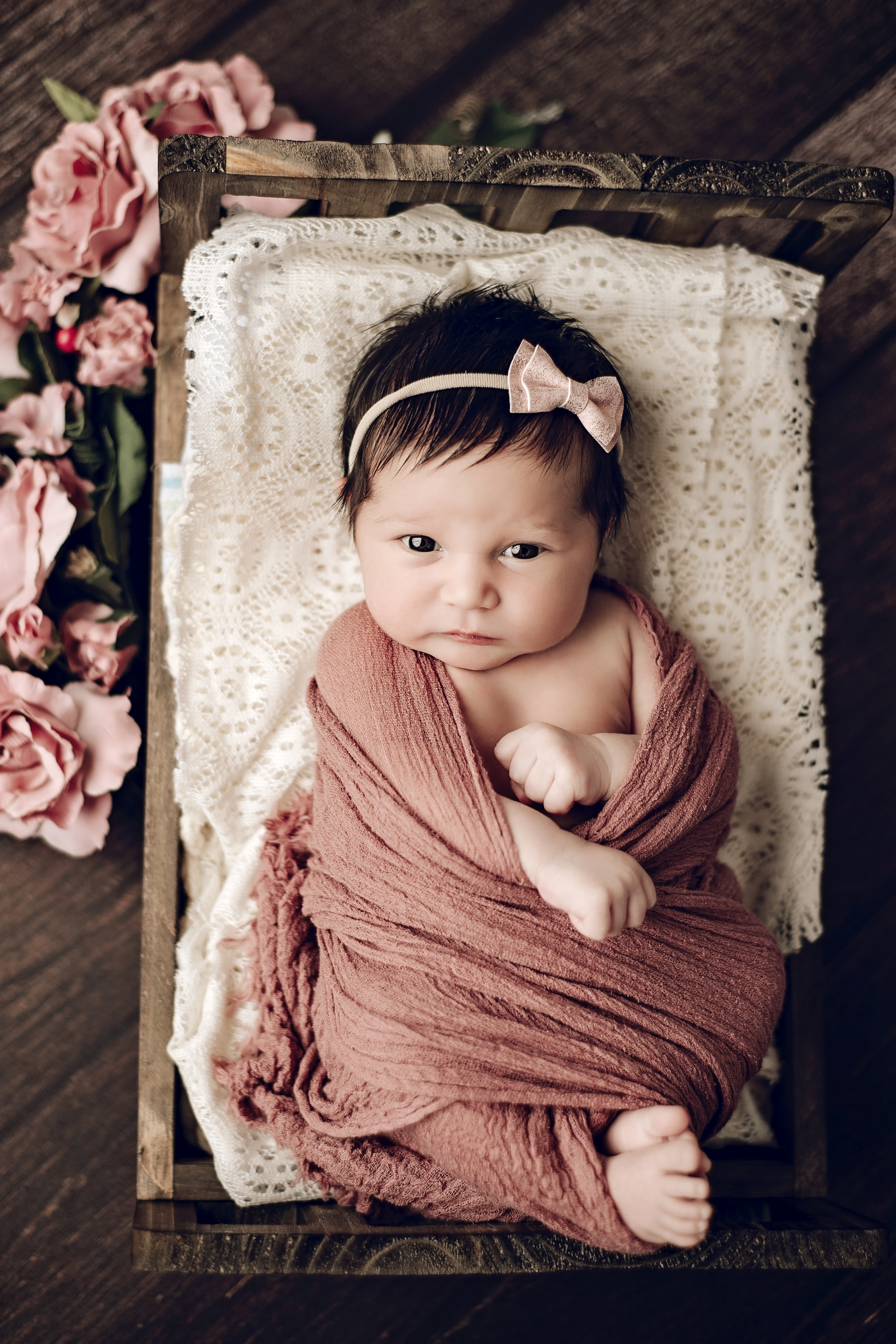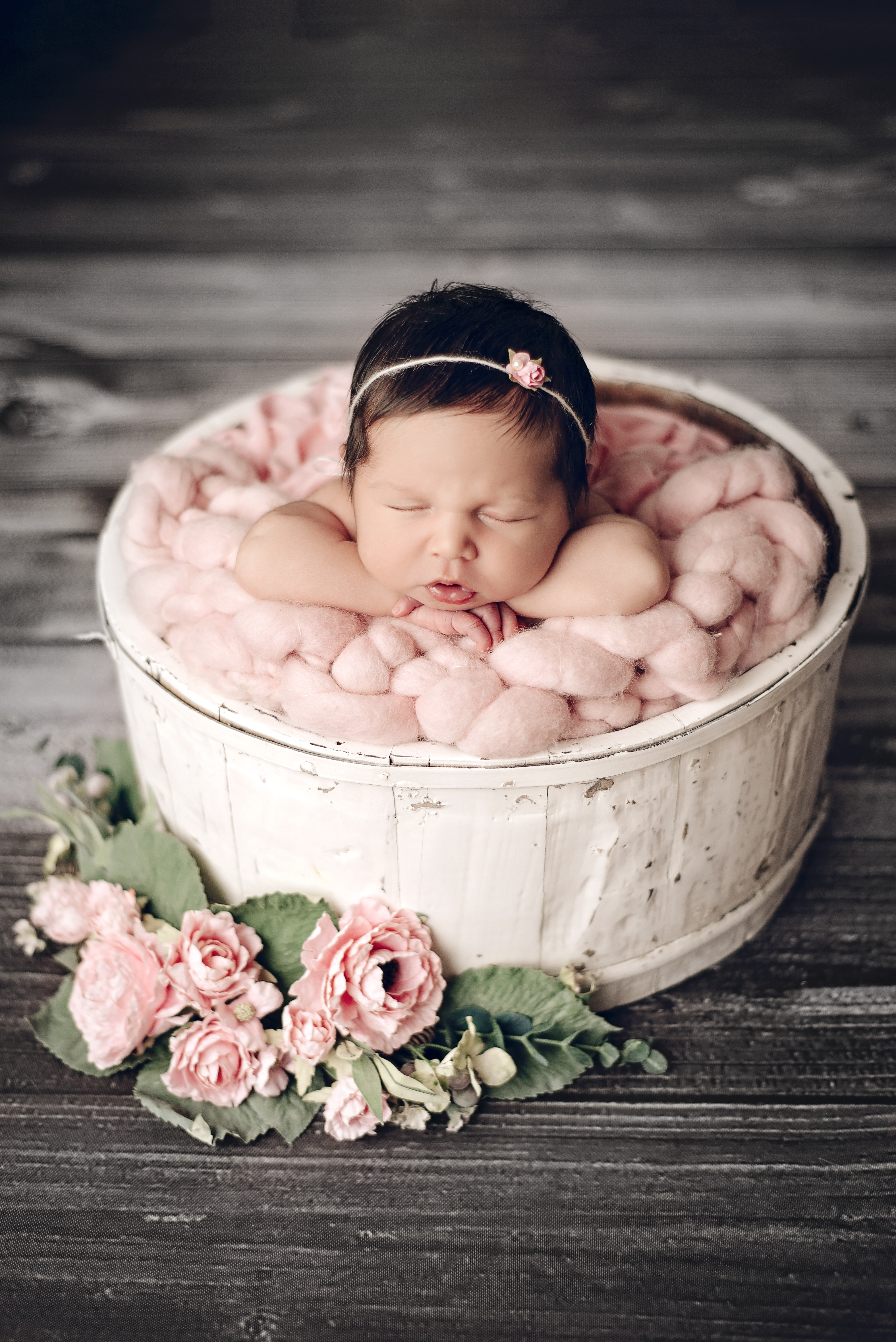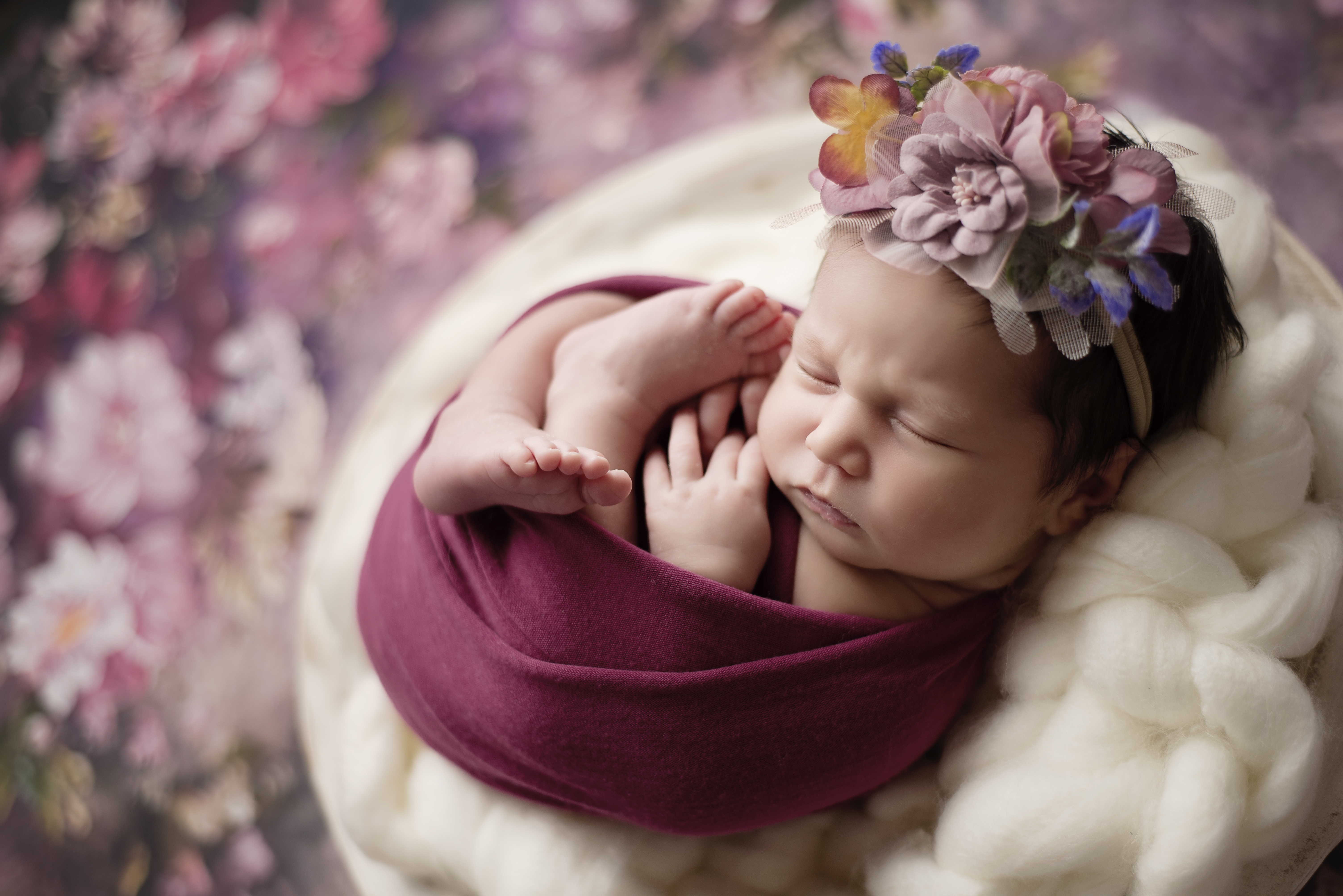 In-studio sessions are held in the comfort of my studio. The studio is warmed up just perfect to be able to get those sleepy naked poses. During the studio session, we also do wrapped and prop poses, as well as family and sibling if desired. All sessions will be done when the baby is between the ages of 5 – 21 days of age. Each session typically lasts between 2.5-3.5 hours. All props and outfits for baby will be provided by me, with your colour preference.